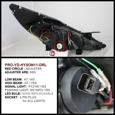 This Hyundai Sonata Projector Headlights will fit 2011, 2012 Hyundai Sonata. Hyundai Sonata 2011-2012 Black Halo Projector Headlights with LED also features LED Daytime Running Light. Replace or upgrade your Hyundai Sonata Projector Headlights with our Hyundai Sonata 2011-2012 Black Halo Projector Headlights with LED.
