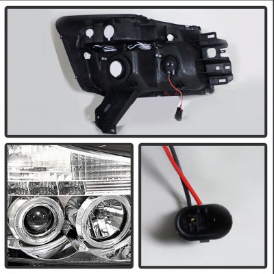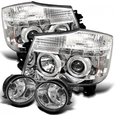 This Nissan Armada Headlights Set will fit 2004, 2005, 2006, 2007 Nissan Armada. Nissan Armada 2004-2007 Clear Projector Headlights and Fog Lights also features Clear Dual Halo Projector Headlights with LED,Clear OEM Style Fog Lights,High Beam H1 included,Low Beam 9006 Not included,Fog Lights Wiring Harness and Accessories included. Replace or upgrade your Nissan Armada Headlights Set with our Nissan Armada 2004-2007 Clear Projector Headlights and Fog Lights.