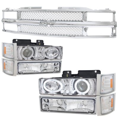 Chevy 3500 Pickup 1994-1998 Chrome Mesh Grille and Projector Headlights
