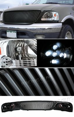 This Ford Expedition Grille and Headlight Conversion will fit 1999, 2000, 2001, 2002 Ford Expedition. Ford Expedition 1999-2002 Black Vertical Grille and Clear Headlights also features Black Vertical Grille,Clear Euro Headlights with LED. Replace or upgrade your Ford Expedition Grille and Headlight Conversion with our Ford Expedition 1999-2002 Black Vertical Grille and Clear Headlights.