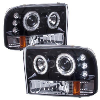 Ford Excursion 2000-2004 Smoked Halo Projector Headlights with LED