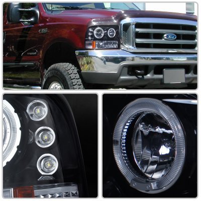 • Ford Excursion 2000-2004 Smoked Halo Projector Headlights with LED