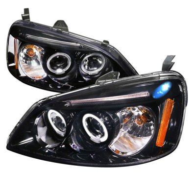 Honda Civic 2001-2003 Smoked Halo Projector Headlights with LED