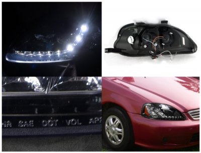 This Honda Civic Projector Headlights will fit 1999, 2000 Honda Civic. Honda Civic 1999-2000 Smoked Projector Headlights with LED Daytime Running Lights also features Distinctive LED Daytime Running Lights,LED Strip improves Night Visibility. Replace or upgrade your Honda Civic Projector Headlights with our Honda Civic 1999-2000 Smoked Projector Headlights with LED Daytime Running Lights.