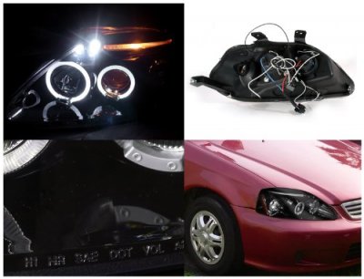This Honda Civic Projector Headlights will fit 1999, 2000 Honda Civic. Honda Civic 1999-2000 Black Smoked Dual Halo Projector Headlights with LED also features Black Housing Smoked Lens, Dual Halo, Low Beam H1, High Beam H1. Replace or upgrade your Honda Civic Projector Headlights with our Honda Civic 1999-2000 Black Smoked Dual Halo Projector Headlights with LED.