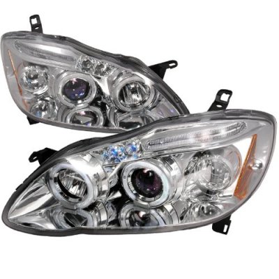 This Toyota Corolla Projector Headlights will fit 2003, 2004, 2005, 2006, 2007, 2008 Toyota Corolla. Toyota Corolla 2003-2008 Clear Halo Projector Headlights with LED also features Dual Halo. Replace or upgrade your Toyota Corolla Projector Headlights with our Toyota Corolla 2003-2008 Clear Halo Projector Headlights with LED.