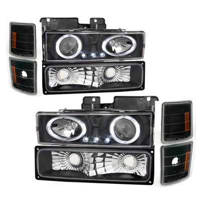 This Chevy Blazer Projector Headlights will fit 1994 Chevy Blazer. Chevy Blazer Full Size 1994 Black Halo Headlights and Bumper Lights also features Black Halo Projector Headlights with LED,Black Bumper Lights,Black Corner Lights. Replace or upgrade your Chevy Blazer Projector Headlights with our Chevy Blazer Full Size 1994 Black Halo Headlights and Bumper Lights.