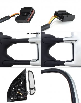 This Ford F350 Towing Mirrors will fit 1999, 2000, 2001, 2002, 2003, 2004 Ford F350. Ford F350 Super Duty 1999-2004 Towing Mirrors Chrome Power Heated also features Chrome Cover,Power Mirror Angle Adjustment,Heated Mirror,Mirror Glass Size: 12" x 8",Manual Extend by Telescoping,Closed Length: 15.5",Extended Length: 17.5",Manual Folding. Replace or upgrade your Ford F350 Towing Mirrors with our Ford F350 Super Duty 1999-2004 Towing Mirrors Chrome Power Heated.