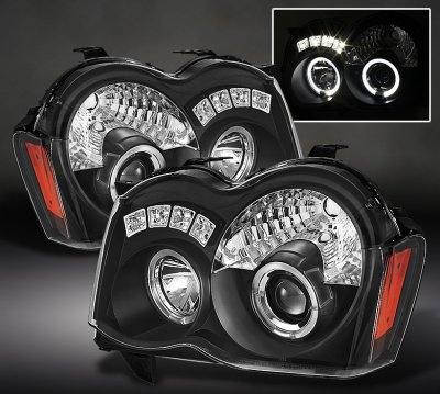 • Jeep Grand Cherokee 2008-2010 Black Halo Projector Headlights with LED