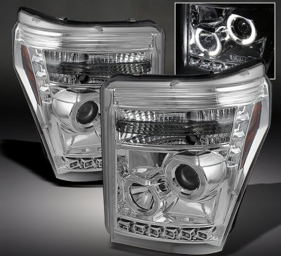 Ford F550 Super Duty 2011-2014 Clear Halo Projector Headlights with LED DRL