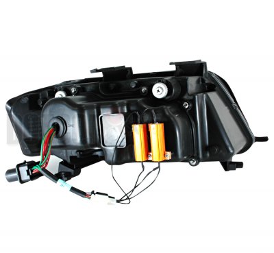 This Audi A6 Projector Headlights will fit 2002, 2003, 2004 Audi A6. Audi A6 2002-2004 Black Projector Headlights with LED Corner Lights also features Black Housing with LED Strip projector headlight with Amber LED turn signal, Stock Halogen headlight models only,Included Low Beam H7 and High Beam H1, Professional installation is highly recommended. Replace or upgrade your Audi A6 Projector Headlights with our Audi A6 2002-2004 Black Projector Headlights with LED Corner Lights.