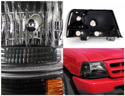 • Ford Ranger 1998-2000 Black Euro Headlights and Bumper Lights Set