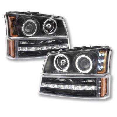 Chevy Silverado 2500 2003-2004 Black Projector Headlights and LED Bumper Lights