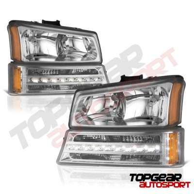 Chevy Silverado 2003-2006 Clear Euro Headlights and LED Bumper Lights
