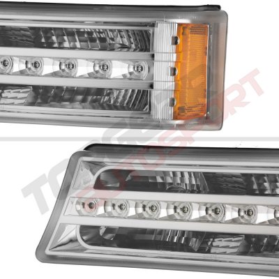 • Chevy Silverado 2003-2006 Clear Euro Headlights and LED Bumper Lights