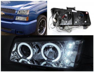 Chevy Silverado 3500 2003-2006 Chrome Halo Projector Headlights with LED