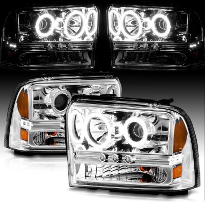 Ford F450 Super Duty 2005-2007 Clear Projector Headlights with CCFL Halo and LED