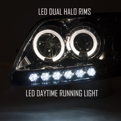 Ford Expedition 1997-2002 Smoked Halo Projector Headlights with LED