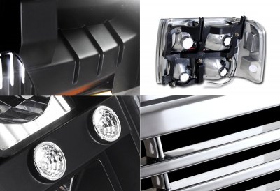 This Chevy Silverado Grille and Headlight Conversion will fit 1999, 2000, 2001, 2002 Chevy Silverado. Chevy Silverado 1999-2002 Chrome Grille and Black Headlights LED DRL also features Chrome Billet Grille,Black Euro Headlights with LED Daytime Running Lights. Replace or upgrade your Chevy Silverado Grille and Headlight Conversion with our Chevy Silverado 1999-2002 Chrome Grille and Black Headlights LED DRL.