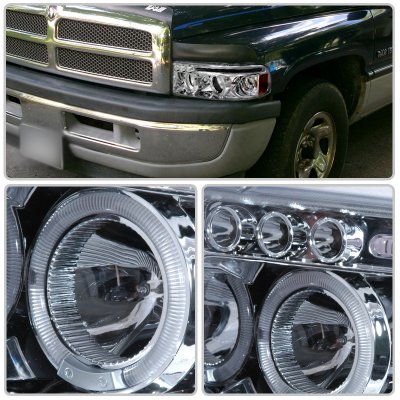 This Dodge Ram 3500 Projector Headlights will fit 1994, 1995, 1996, 1997, 1998, 1999, 2000, 2001 Dodge Ram 3500. Dodge Ram 3500 1994-2001 Clear LED Eyebrow Projector Headlights with Halo also features Projector Style Lighting,Direct Replacement,Easy Installation. Replace or upgrade your Dodge Ram 3500 Projector Headlights with our Dodge Ram 3500 1994-2001 Clear LED Eyebrow Projector Headlights with Halo.