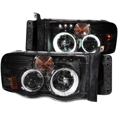 Dodge Ram 3500 2003-2005 Black Projector Headlights with Halo and LED