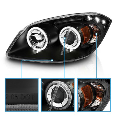 This Chevy Cobalt Projector Headlights will fit 2005, 2006, 2007, 2008, 2009, 2010 Chevy Cobalt. Chevy Cobalt 2005-2010 Projector Headlights Black Halo LED also features Black Housings,Dual Halo and LED Accent Lighting,DOT Approved,Low Beam: H7,High Beam: H1,Light bulbs are not included. Replace or upgrade your Chevy Cobalt Projector Headlights with our Chevy Cobalt 2005-2010 Projector Headlights Black Halo LED.