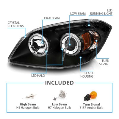 Chevy Cobalt 2005-2010 Projector Headlights Black Halo LED