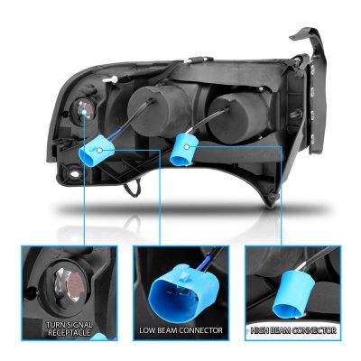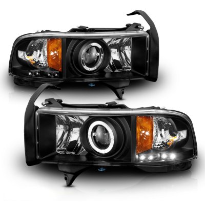 Dodge Ram 2500 1994-2002 Projector Headlights Black Halo LED