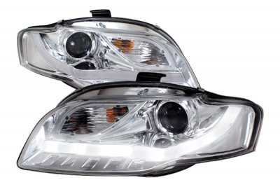 Audi A4 2006-2008 LED DRL Projector Headlights Chrome