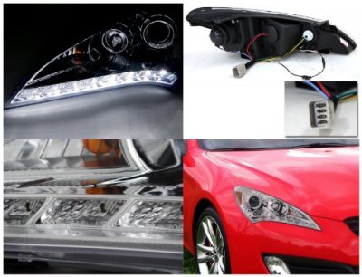Hyundai Genesis 2010-2012 Chrome Projector Headlights LED DRL