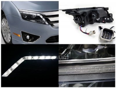 This Ford Fusion Projector Headlights will fit 2010, 2011, 2012 Ford Fusion. Ford Fusion 2010-2012 Black Projector Headlights LED DRL also features Projector Style Lighting,Direct Replacement,Easy Installation. Replace or upgrade your Ford Fusion Projector Headlights with our Ford Fusion 2010-2012 Black Projector Headlights LED DRL.