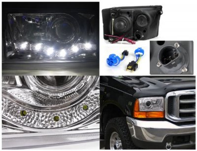 Ford F350 Super Duty 1999-2004 Chrome Projector Headlights LED DRL