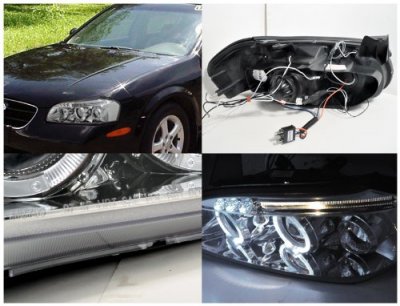 • Nissan Maxima 2000-2001 Chrome Halo Projector Headlights LED