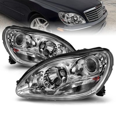 This Mercedes Benz S Class Projector Headlights will fit 2000, 2001, 2002, 2003, 2004, 2005 Mercedes Benz S Class. Mercedes Benz S Class 2000-2005 Chrome Projector Headlights also features Chrome Housings,DOT Approved,Low Beam: H7,High Beam: H7,Light bulbs are not included. Replace or upgrade your Mercedes Benz S Class Projector Headlights with our Mercedes Benz S Class 2000-2005 Chrome Projector Headlights.