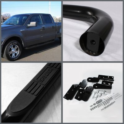 This Ford F150 Nerf Bars will fit 2004, 2005, 2006, 2007, 2008 Ford F150. Ford F150 SuperCrew 2004-2008 Nerf Bars Black also features Black Powder Coated Finish,Built-in Side Step Pads,3" Round Tubes,Easy installation,Bolt-on with No Drilling Required,Mounting Hardware Included. Replace or upgrade your Ford F150 Nerf Bars with our Ford F150 SuperCrew 2004-2008 Nerf Bars Black.