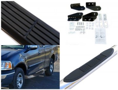 This Ford F150 Nerf Bars will fit 1997, 1998, 1999, 2000, 2001, 2002, 2003 Ford F150. Ford F150 SuperCab 1997-2003 Nerf Bars Stainless Steel also features Polished Stainless Steel Finish,Built-in Side Step Pads,3" Round Tubes,Easy installation,Bolt-on with No Drilling Required,Mounting Hardware Included. Replace or upgrade your Ford F150 Nerf Bars with our Ford F150 SuperCab 1997-2003 Nerf Bars Stainless Steel.