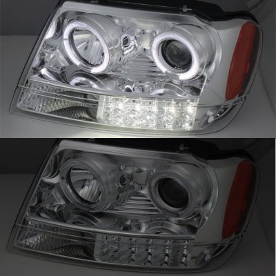 Jeep Grand Cherokee 1999-2004 Chrome Projector Headlights Halo LED