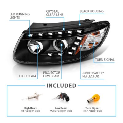 Hyundai Santa Fe 2007-2009 Projector Headlights Black LED Strip