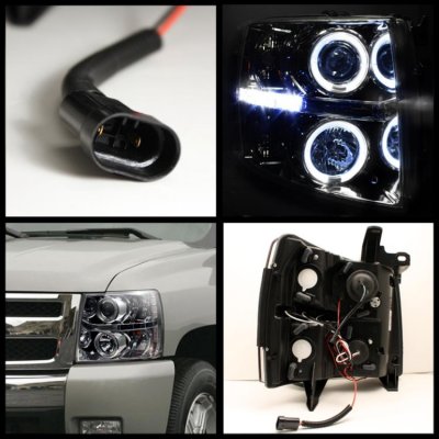 This Chevy Silverado Headlights Set will fit 2007, 2008, 2009, 2010, 2011, 2012, 2013 Chevy Silverado. Chevy Silverado 2007-2013 Chrome Projector Headlights and Tail Lights also features Chrome Housings,Dual Halo Projector Headlights,LED Accent Lighting,LED Tail Lights. Replace or upgrade your Chevy Silverado Headlights Set with our Chevy Silverado 2007-2013 Chrome Projector Headlights and Tail Lights.