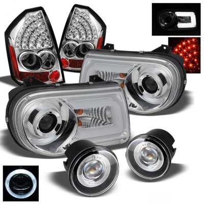 Chrysler 300C 2005-2007 Chrome Headlights DRL and LED Tail Lights and Halo Fog Lights