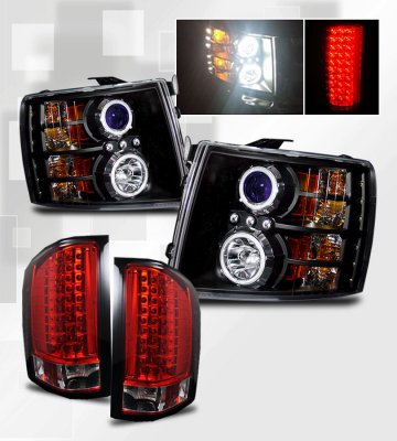 Chevy Silverado 3500HD 2007-2014 Black Headlights CCFL Halo and Red Clear LED Tail Lights