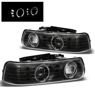 • Chevy Tahoe 2000-2006 Black Halo Projector Headlights LED DRL