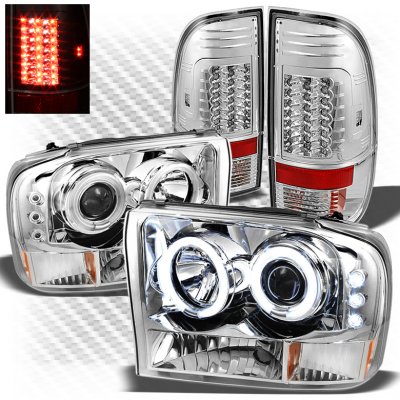 Ford F350 Super Duty 1999-2004 Chrome CCFL Halo Headlights and LED Tail Lights