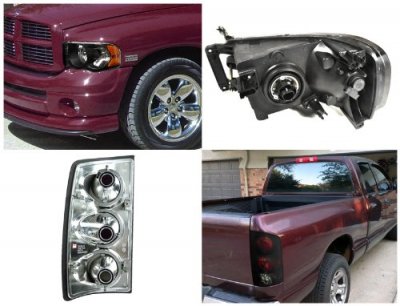 This Dodge Ram Headlights Set will fit 2002, 2003, 2004, 2005 Dodge Ram. Dodge Ram 2002-2005 Black Headlights and Smoked Tail Lights also features Black Euro Headlights,Black Smoked Altezza Tail Lights. Replace or upgrade your Dodge Ram Headlights Set with our Dodge Ram 2002-2005 Black Headlights and Smoked Tail Lights.