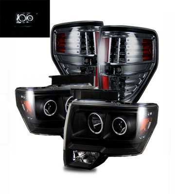 • Ford F150 2009-2014 Black CCFL Halo Headlights and Smoked LED Tail Lights