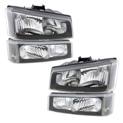 Chevy Silverado 3500 2003-2006 Black Clear Headlights and Bumper Lights