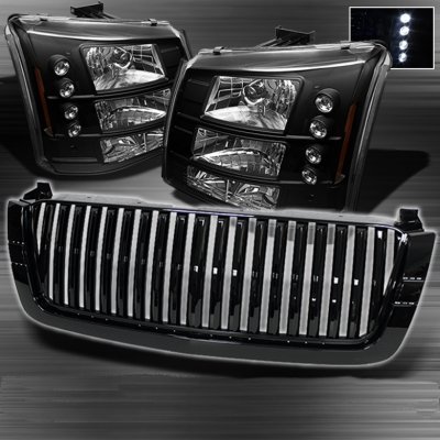 Chevy Silverado 3500 2003-2004 Black Vertical Grille and Headlight Conversion Kit