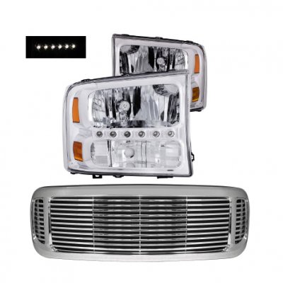 Ford Excursion 2000-2004 Chrome Grill and Headlights Conversion with LED