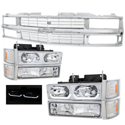 1994 Chevy Blazer Full Size Chrome Grille and LED DRL Headlights Set