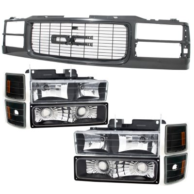 GMC Sierra 1994-1998 Black Grille and Headlights Set